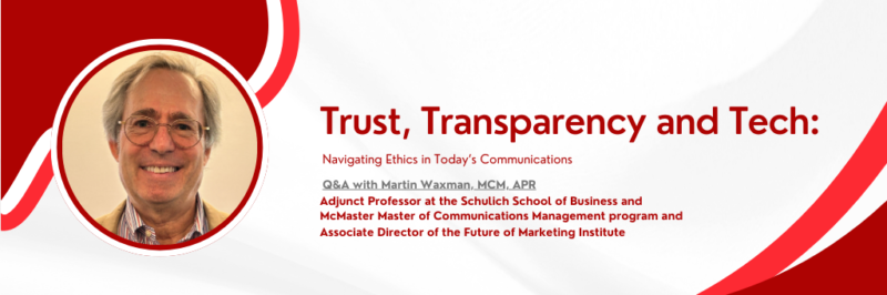 To explore these challenges, we connected with Martin Waxman, MCM, APR, an adjunct professor at the Schulich School of Business and McMaster Master of Communications Management program, and associate director of the Future of Marketing Institute. Martin brings a unique perspective at the intersection of ethics, technology, and communications leadership, guiding professionals on how to navigate emerging tools responsibly while building and maintaining trust.